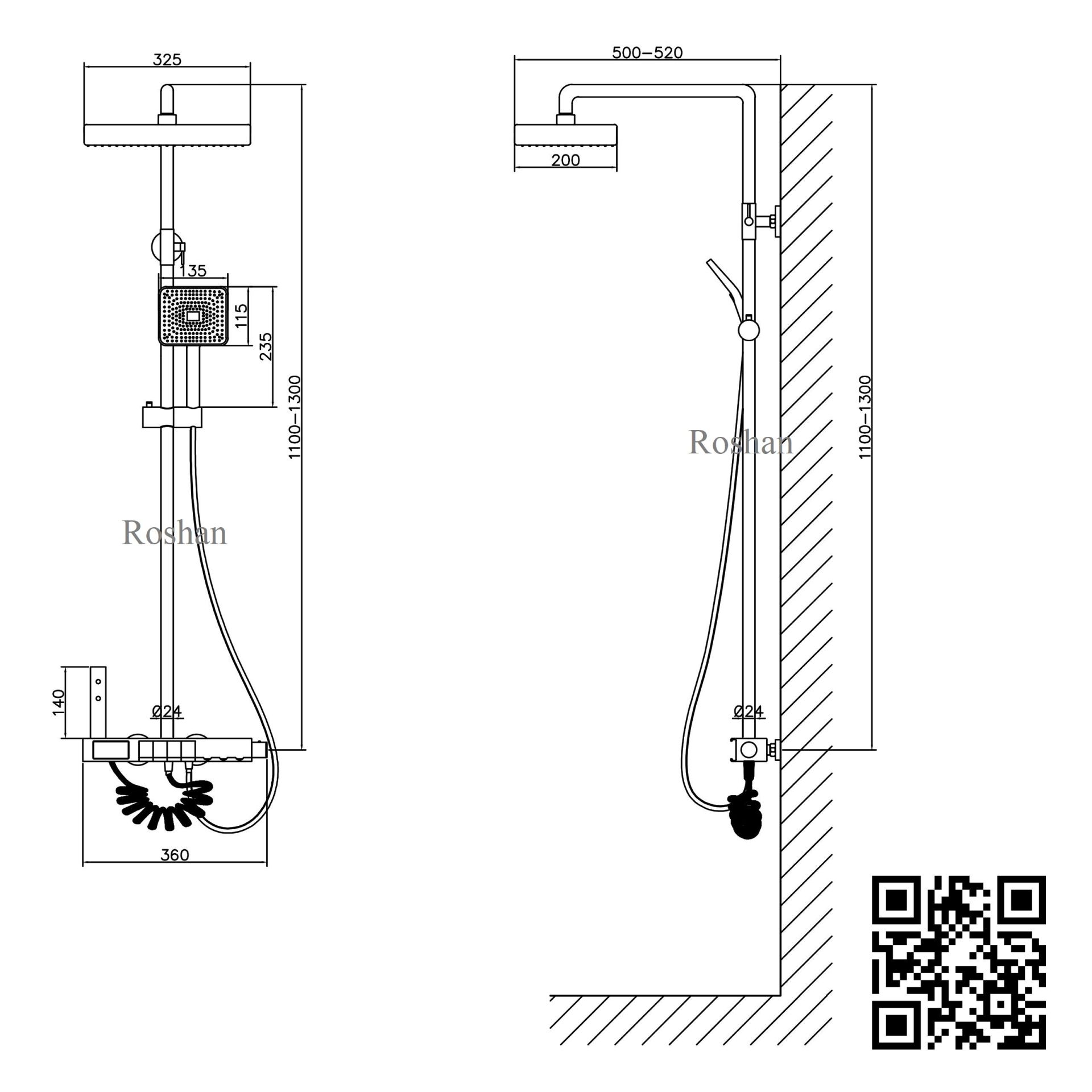 Bộ sen cây mặt kính có khoá nhiệt và hiển thị nhiệt độ Roshan Premium R20228-2